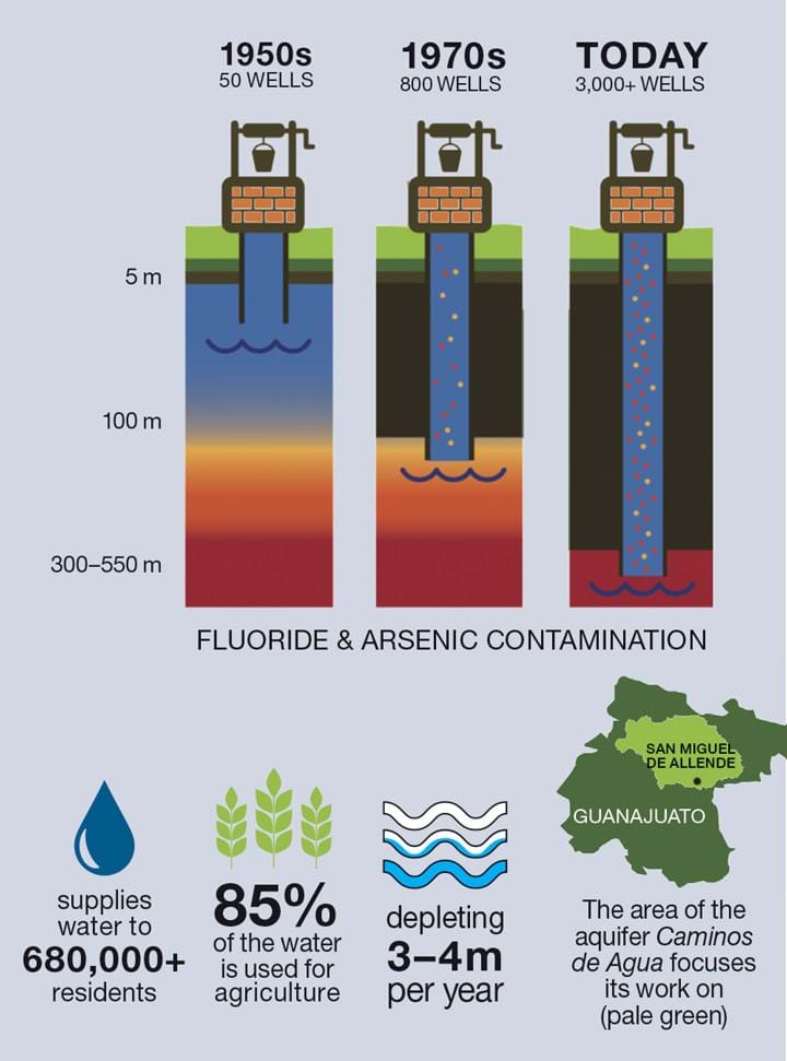THE breathtakingly beautiful town of San Miguel de Allende, where NGO Caminos de Agua has its office, boggles many visitors’ minds with its colonial architecture and rich history. Above ground, it is a perfectly charming touristic hotspot with a growing number of luxury hotels, bars and restaurants, but below the surface there is a slow unseen disaster taking place.