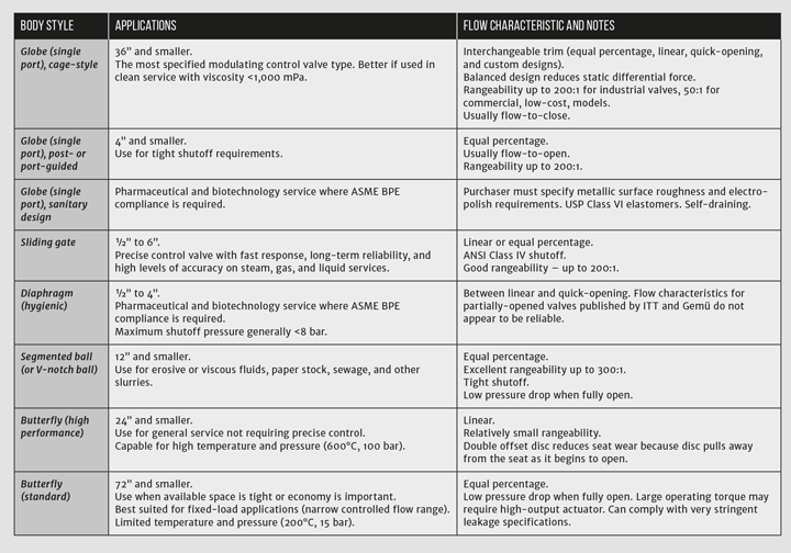 CONTROL valves are used to control several important process parameters: flow rate, level, temperature, pressure, and composition. This month I am discussing rules of thumb that engineers use to select and size control valves. Some of these rules are fuzzy, and applying alternative rules may lead to conflicting answers. You can often resolve those conflicts by understanding the reasoning behind the rules and assessing how your individual problem fits.