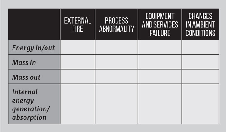 Combining these two lists produces a matrix as shown in Table 1. A matrix like this provides a more generic tool to identify causes of under and over pressure rather than a set checklist, which after all, will always have a ‘miscellaneous’ or ‘other’ section at the bottom, be it implicit or implied. Although, this is not a silver bullet, and it requires engineering knowledge and judgment to correctly identify all relief cases. It does however, provide a good starting point for an assessment.