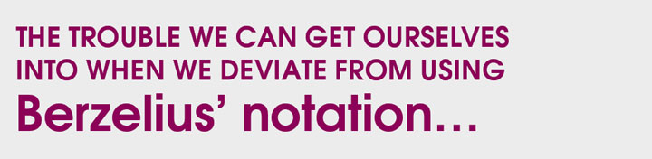 Berzelius’s accomplishments are many and important, particularly the simple idea that all elements could be uniquely represented by one or two letters, and a subscript giving the number of elemental atoms in a group. Berzelius had originally proposed a superscript, but the printers preferred it below the line.