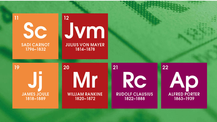 It was not until 1909 that the word enthalpy was coined, as a more precise definition than “heat energy”, though it was not widely used. In 1922, the year of IChemE’s founding, Alfred Porter (1863–1939) proposed, in the prestigious Transactions of the Faraday Society, that H should be restricted to enthalpy rather than heat in general. This important definition of heat was done in a paper on refrigeration. He pointed out that the Greek capital letter H is for eta. Sadly, the Greeks use E epsilon in spelling the word.