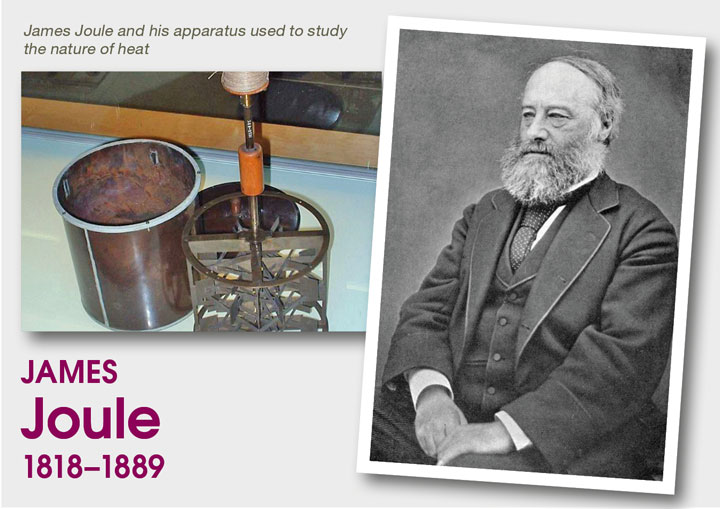 The obvious person to thank is James Joule (1818–1889), after whom the SI unit is named. The prevailing view was similar to the phlogiston theory for combustion in that there was an invisible massless substance called caloric which transferred from flames, and transferred when something was heated or cooled. It had been challenged by an earlier experiment in which water was boiled by friction, and confirmed in precise experiments by Joule that mechanical work could be quantitatively changed into heat changes. Julius Von Mayer (1814–1878) in Germany did something similar around the same time, but his experiments were less careful. While subsequent writers credited both, Joule also had the idea that it was something to do with motions of atoms.