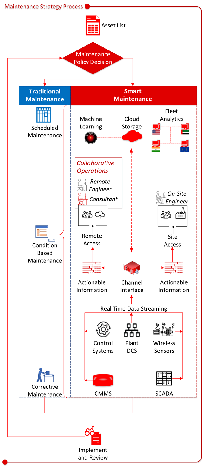 There is a great opportunity to apply these technologies to update the traditional maintenance methodologies used in process industries. However, true ‘smart maintenance’ means deploying these innovations together with traditional approaches where appropriate, within a broader maintenance system that in turn supports overall operational and business objectives (see Figure 1).