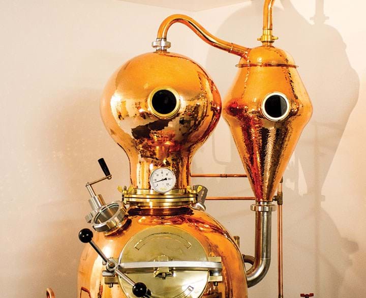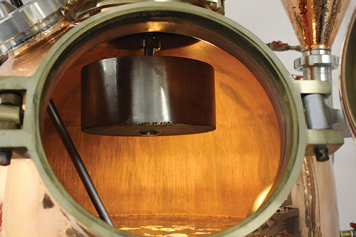 “What we do is take juniper, grind it and steep it in the alcohol so it macerates for 36 hours before we start distilling. 12 hours before, we will add some of the other ingredients,” he says.