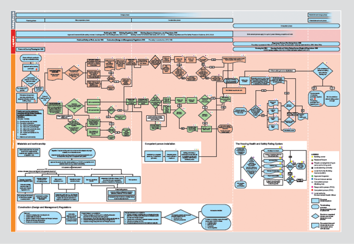 The review team began work in August. We put out a call for evidence and received a massive response. It very quickly became clear that many of the people who were part of the system already knew that it wasn’t working – those in industry, regulators and of course, residents of other high rise buildings. By the time I published my interim report in December last year we had produced a full map of the regulatory system (outlined in Figure 1) – which showed an unbelievable level of complexity and highlighted the many opportunities for people to take shortcuts or to game the system. The system was not fit for purpose. A radical overhaul was needed – guidance was complex and impenetrable for the user; roles and responsibilities were unclear; there was no differentiation in competency requirements between those who worked on simple buildings and those who worked on high rise complex buildings; compliance was weak and enforcement and sanctions virtually non-existent; and the system of product testing failed to provide meaningful quality assurance.