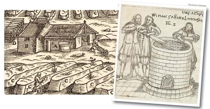 The increased demand for saltpetre in the next century led King Charles I to order “his loving subjects carefully and constantly keep and preserve in some convenient vessels or receptacles fit for the purpose, all the urine of man during the whole year, and all the stale of beasts which they can save and gather together whilst their beasts are in their stables and stalls, and that they be careful to use the best means of gathering together and preserving the urine and stale, without mixture of water or other thing put therein. Which our commandment and royal pleasure, being easy to observe, and so necessary for the public service of us and our people, that if any person do be remiss thereof we shall esteem all such persons contemptuous and ill affected both to our person and estate, and are resolved to proceed to the punishment of that offender with what severity we may.”