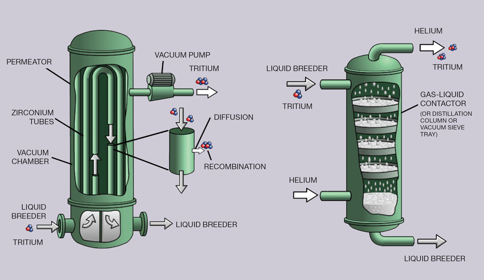 Options such as liquid lithium can inherently reduce the potential of tritium permeation, as the solubility of hydrogen is extremely high. However, this makes extraction more challenging as the tritium will naturally stay within the lithium, ruling out otherwise promising processes, such as vacuum sieve trays, or permeation windows.