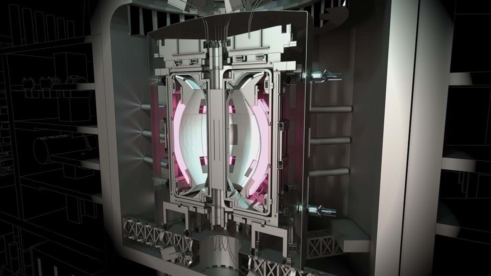 When a mix of two types of hydrogen (deuterium and tritium) are heated to form a plasma at extreme temperatures (10 times hotter than the core of the sun) they fuse together to create helium and release huge amounts of energy.