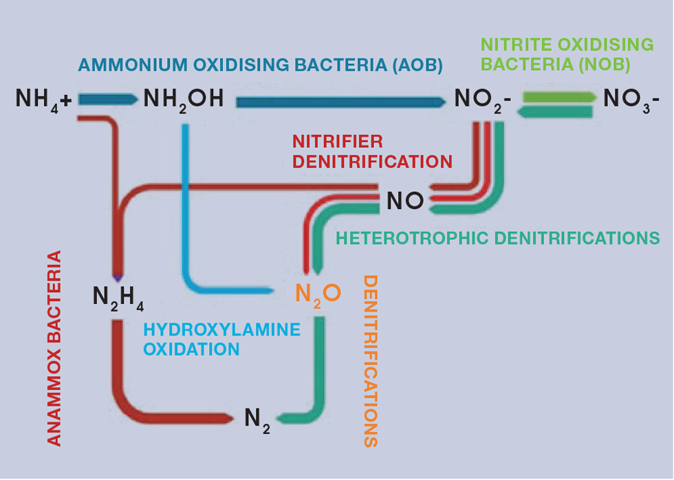 IT STARTS with the food we eat. Whether directly, through plant proteins in legumes which produce their own nitrogen fertiliser, or indirectly, through the protein intake of animals we may choose to eat. A fraction of this protein is nitrogen, and this is excreted daily by us all – something like 12.5 g of nitrogen per person per day into our sewerage networks and along to our wastewater treatment or water resource recovery facilities (WRRFs).