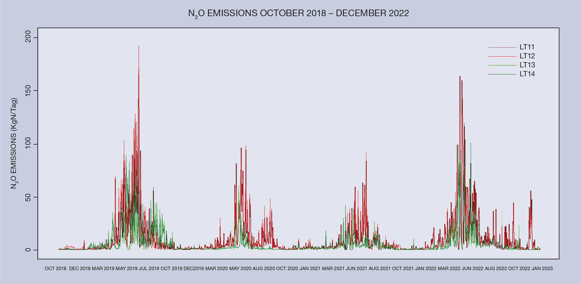 When practitioners are reviewing mitigation case studies, the evidence of sustained mitigation given the known long-term (including seasonal) variation in nitrous oxide production is important as well as issues of of data integrity and associated metadata for site and instruments (for operating conditions and calibration dates and records).