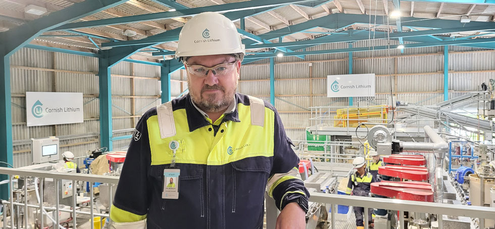Showing me around Cornish Lithium’s lithium hydroxide demonstration site, the Trelavour Lithium Project, is Dai Moseley, process manager for hard rock minerals. “We can make lithium carbonate in this plant,” he says. “But we have chosen to produce hydroxide as it is used to produce the higher performance nickel chemistry cells that are planned to be produced in the UK.”