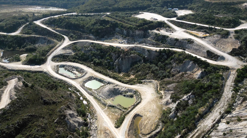 The mining process begins at the Trelavour Pit, where excavators extract granite rock to be crushed into smaller, more transportable pieces. Once broken down, the granite makes its way to the demonstration plant. Traditional hard rock processing methods, such as calcination – which involves roasting lithium-rich concentrate at around 1,000°C – are both carbon- and water-intensive.