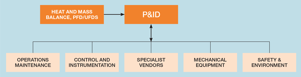 The P&ID is developed by the chemical engineering group with input from a variety of disciplines. The key disciplines involved are shown in Figure 2.