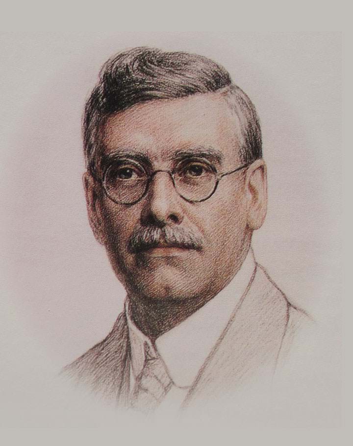 The early IChemE Seal was designed by his artist wife, Edith (who also drew the portrait used here). It interpreted IChemE as a young sapling needing support at the time, but nourished by streams from chemistry and engineering, and in the company of two doves. I like to think these were John and Edith.