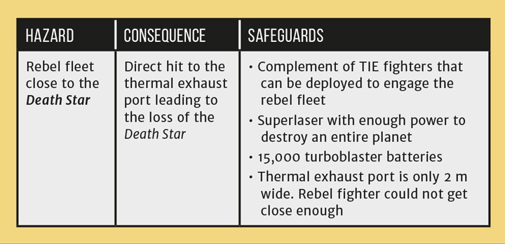 When viewed in a traditional table format, it appears that there are enough safeguards to prevent the Death Star’s destruction (see Table 1).