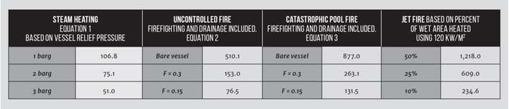 To be able to size the relief device it is necessary to know what is the potential heat input into the vessel. Using the latent heat of vaporisation of the contents, it is then possible to calculate the flow of vapour that the relief device needs to pass.
