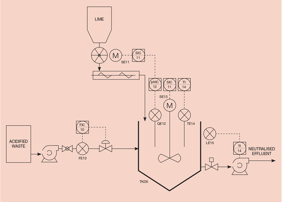 Consider a package plant designed to neutralise acidified waste with lime (see Figure 1).