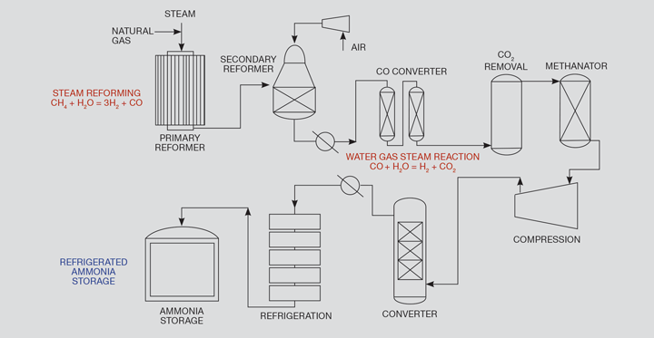 Hydrogen for ammonia plants is normally produced using steam methane reforming (SMR) technology (Figure 1), and the projects get bigger and bigger as advantage of scale is taken. The largest single-train ammonia plant in the world is thought to be that located at Al-Jubail, Saudi Arabia. It produces