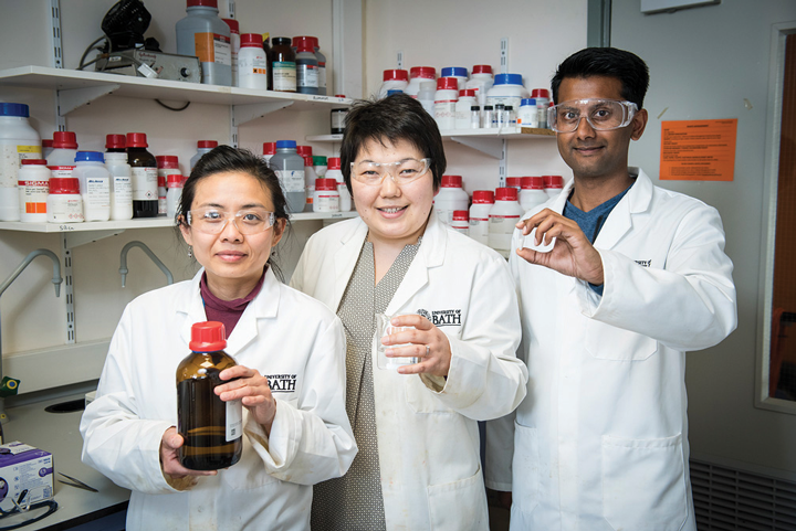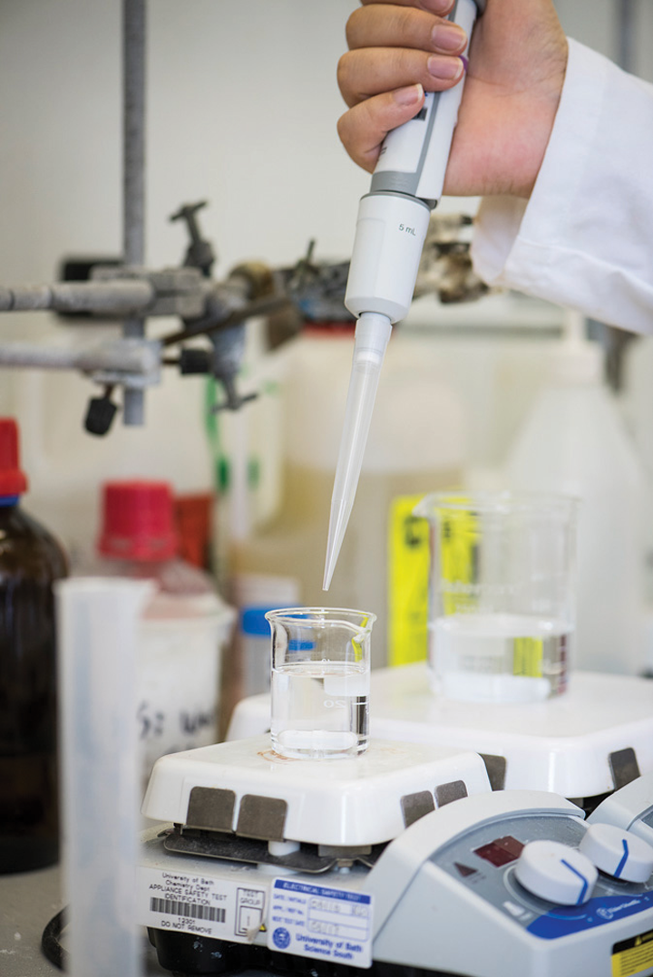 What I was really missing at that time was biological knowledge – I learned about proteins and vaccines by reading literature, but since I had never really worked with biological matter in the lab, I had no idea how even to start working on this. In 2013, I moved to the Department of Chemistry in Bath and discussed the idea with Paul Raithby (professor of inorganic chemistry) who thought it a brilliant idea and told me to go speak to Karen Edler in Chemistry, and Jean van den Elsen in Biology. So I did – and this was the turning point, because they provided me with TEOS (tetraethyl orthosilicate – a silica precursor we now use for ensilication), and “bucket loads” of cheap, easily-available proteins. A working lab was born.