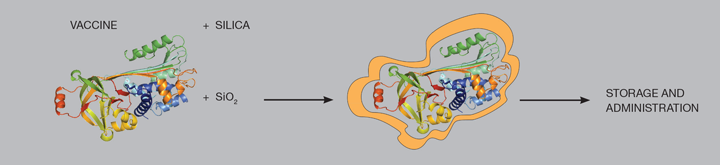 From then on that second question became almost an obsession for me. At the time I was already a Royal Society University Research Fellow, working on developing porous alumino-silicate materials. I decided to dedicate some of my time to developing an idea – applying silicates (materials made of amorphous silica, SiO2) to the proteins within vaccines, to render vaccines stable at room temperatures. Silica is a great material, it is biocompatible, non-toxic, cheap, abundant and easy to manipulate.
