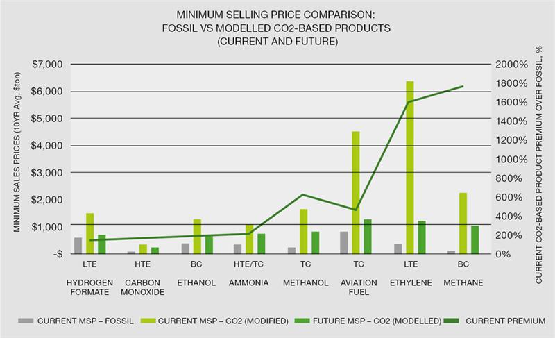 So, what molecules can actually or conceivably be made from CO2 and electricity? The answer resides in the exacting match of cost of production and industry price of the fossil alternative.