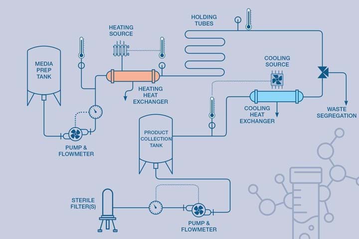Another technology which has been shown to be effective for treating cell culture media is High Temperature Short Time (HTST) pasteurisation. This technology is more prevalent in the food and beverage industry, but it has been used in biopharma since the early 90s.