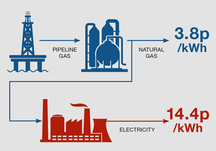 Figure 1 shows today’s cost per kWh for delivery of gas and electricity – costs are taken from UK Power2.