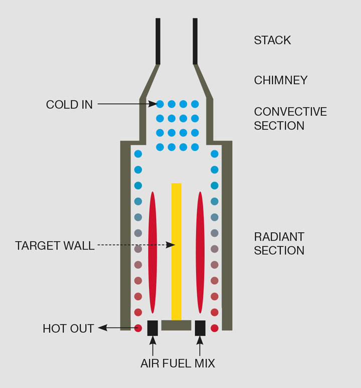Gas furnaces and boilers are the main forms of gas process heating. Furnaces can be either direct or indirect, where a separate medium is heated and used to impart heat to the process. Furnaces/boilers cover the low- to high-temperature range of process heating applications. Figure 5 recaps the main components of a fired heater.