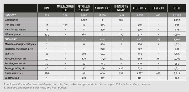 THE chemicals sector is a significant energy user and consequently a direct and indirect contributor to the UK’s GHG footprint (see Table 1)1.