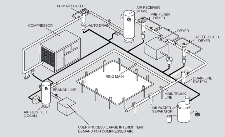 Not all parts of the network operate to the same hours or the same pressure, so separate the compressed air system into zones. At the same time isolate redundant pipework. When replacing your piping, consider all the alternatives to the usual galvanised steel. Aluminium and plastic pipes do not corrode and also have a much smoother internal finish causing less pressure drop and thus saving energy.