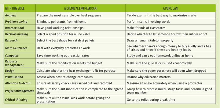 Helping out at a school and being an engineer are such different roles, but I have reviewed the skills I had acquired as an engineer and have compared them with those a good pupil needs (see Table 1).