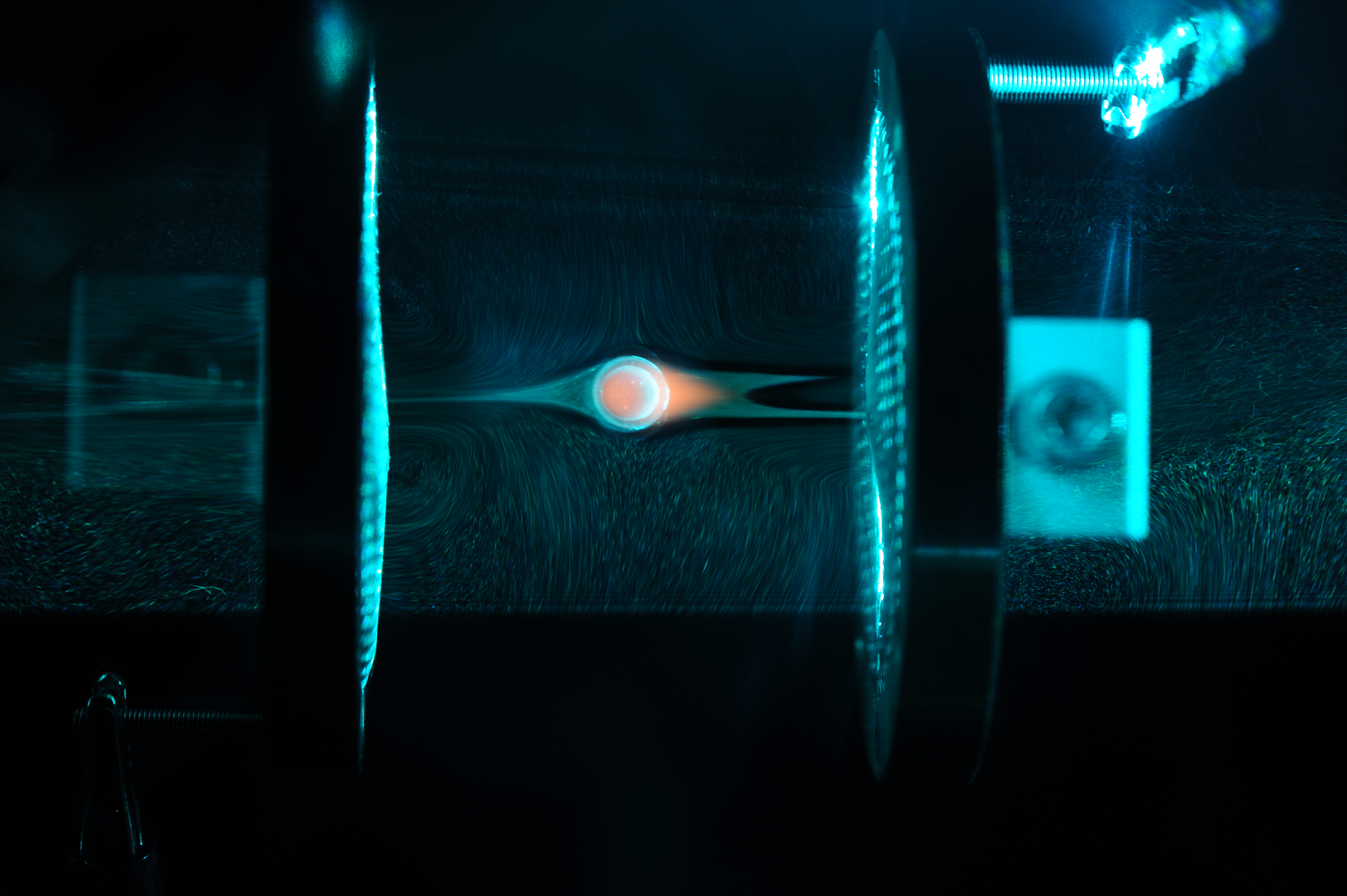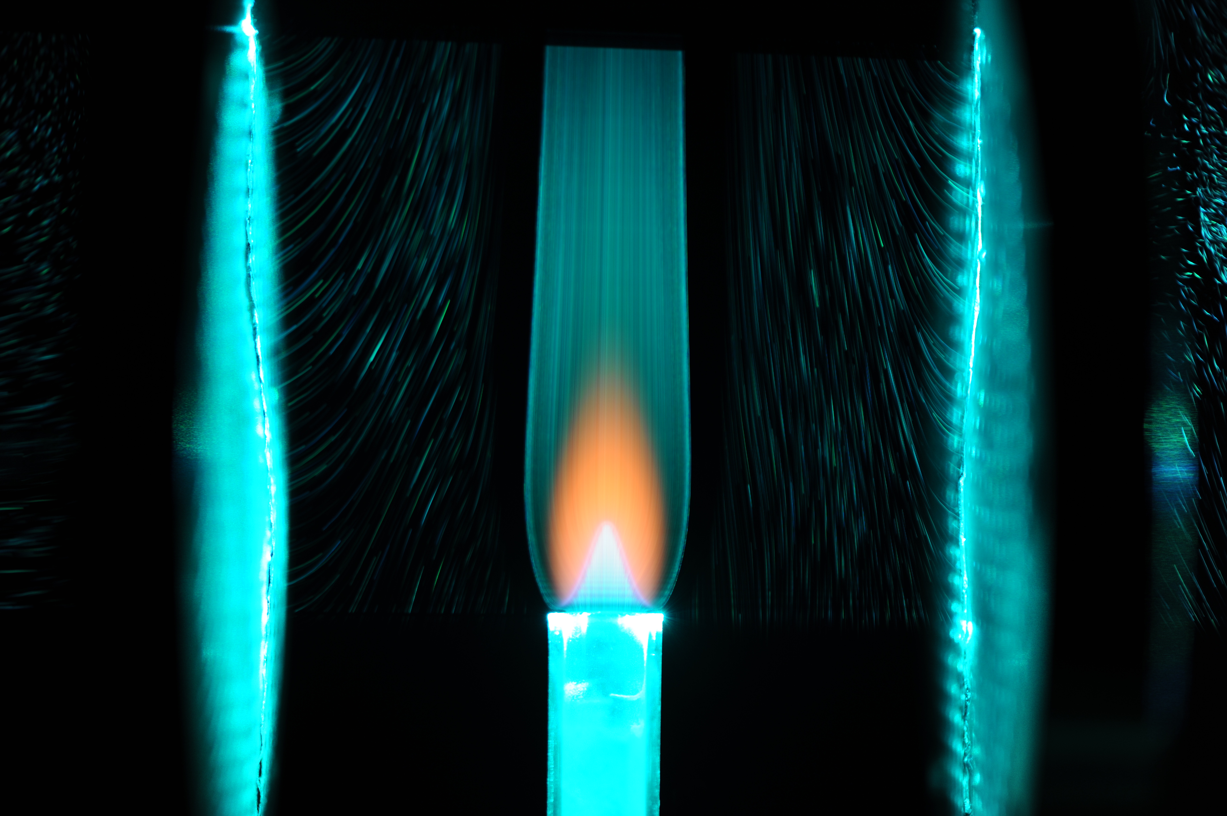 This visualisation was enhanced in quality by adding reflective seeding particles made from titanium oxide and oil to the flame.