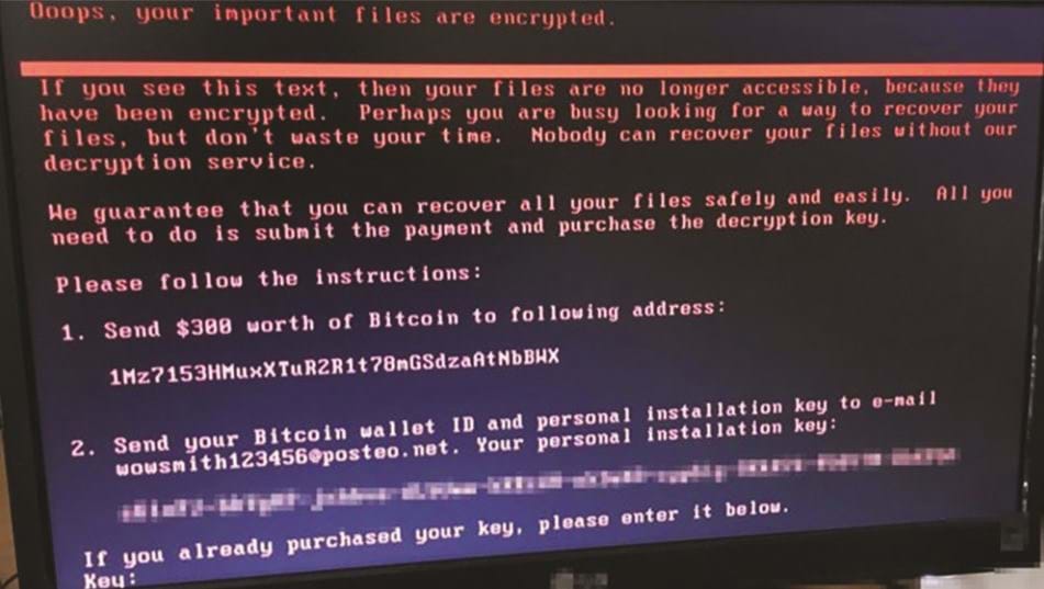 Victims of the ransomware attack have been told they must pay US$300 in Bitcoin to recover their encrypted files.