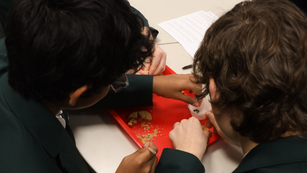 Nikhil Mehta, a graduate process engineer with PM Group, ran a task where student had to “mine” chocolate chips from cookies using lolly sticks, and then choose how to invest the profits from getting the chocolate out. Should they buy sharper extraction tools, or put their money into acquiring bigger cookies?