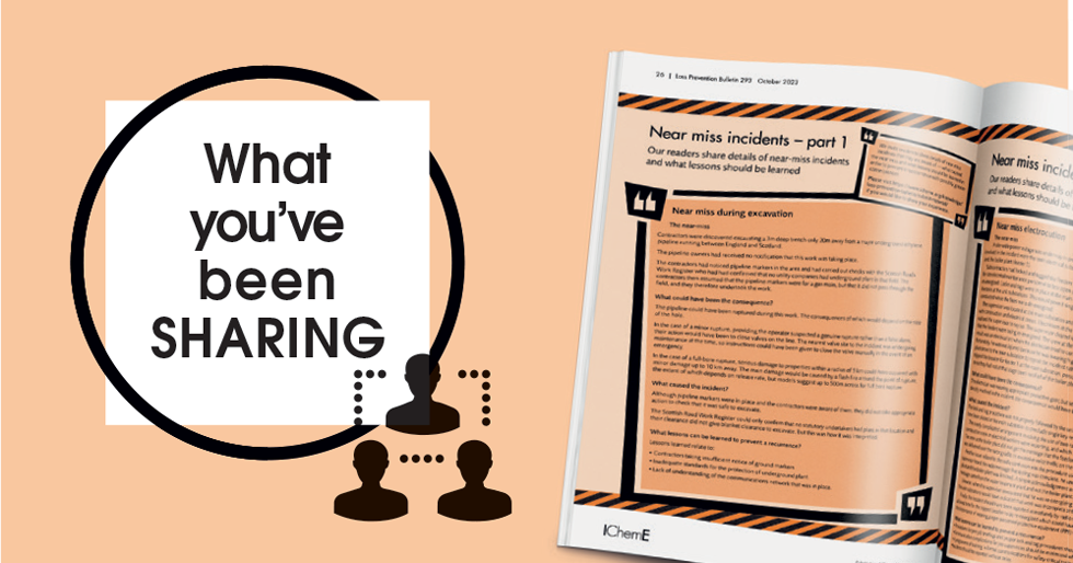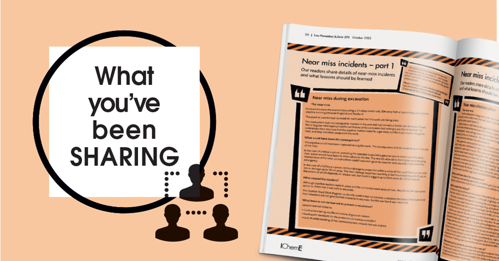 The Loss Prevention Bulletin, which members have free access to online through the IChemE website, has launched a new series where readers share near-misses. The first was published in issue 293 and shares the details of how contractors excavating close to an underground ethylene pipeline narrowly avoided a rupture which could have had catastrophic consequences for local communities. Tracey Donaldson, editor of LPB, said: “We have created a near-miss template for engineers to fill in and help share their lessons. The information can be published without naming the author or the plant and location involved. The important thing here is to help the community learn from one another and prevent recurrences that could lead to greater and tragic consequences.”