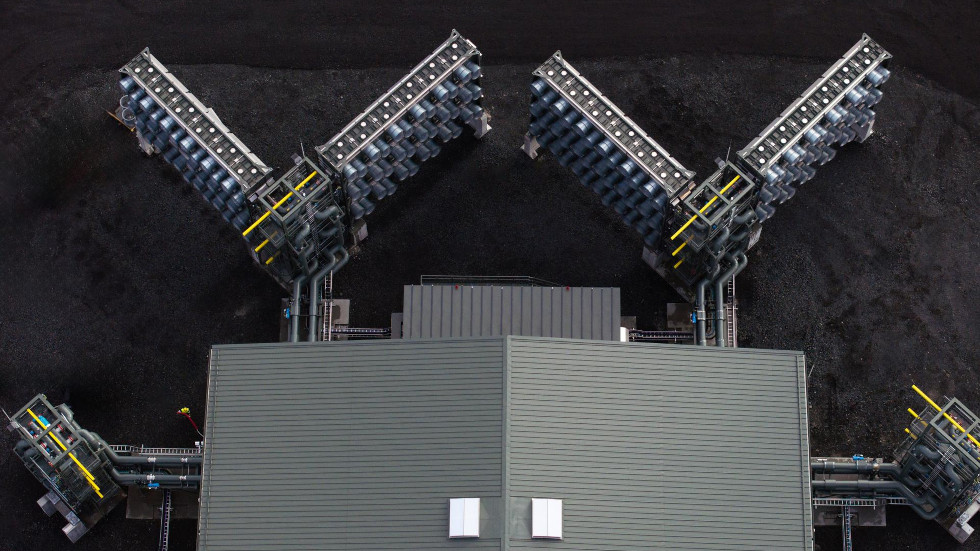 To release this captured CO2, the doors on the collectors are closed and steam produced from an onsite geothermal power plant heats up the sorbent material to around 100°C. This frees a concentrated stream of CO2 mixed with steam that is piped to a process hall for further purification. From here on in, Climeworks is making use of established processing technologies.