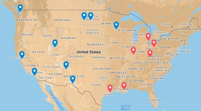 Andeavor, previously Tesoro, operates ten refineries in California, the Mid-Continent, and Pacific Northwest, which together have a total capacity of 1.2m bbl/d. Marathon has six facilities in the Gulf Coast and Midwest with a combined capacity of 1.88m bbl/d.