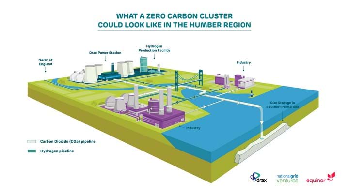 DRAX, Equinor, and National Grid Ventures have signed an MoU to investigate construction of a large-scale carbon capture usage and storage (CCUS) network and a hydrogen production facility in the Humber, UK in the mid-2020s. The partners aim to create a “net-zero” carbon cluster in the North of England.